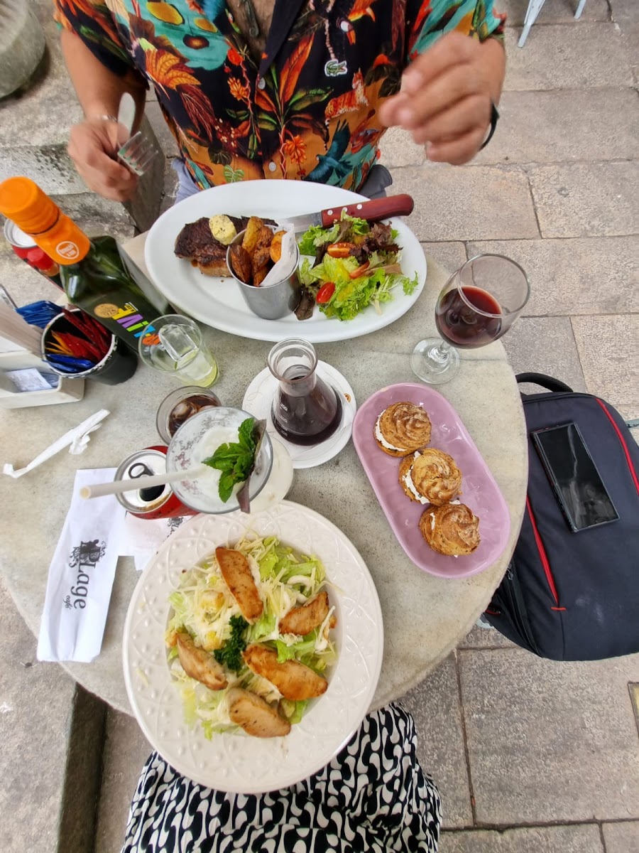 The view from the entrance of the cafe was amazing, but there was a long like to take a picture and we skipped it. The food was so good. I had a typical Brazilian plate and fresh fruit juice, Brazilian beer. I was curious how it goes when it rains.